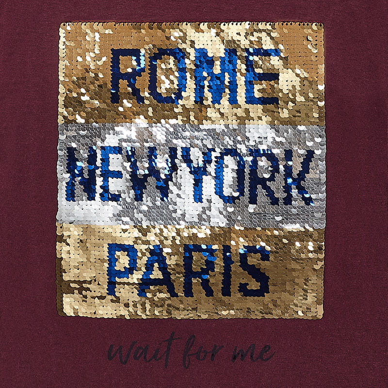 Ładna koszulka Mayoral dla dziewczynki w bordowym kolorze, z długim rękawem i cekinową aplikacją na przodzie.
