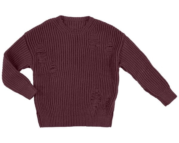 Modny sweter Mayoral dla dziewczynki w bordowym kolorze z przetarciami.