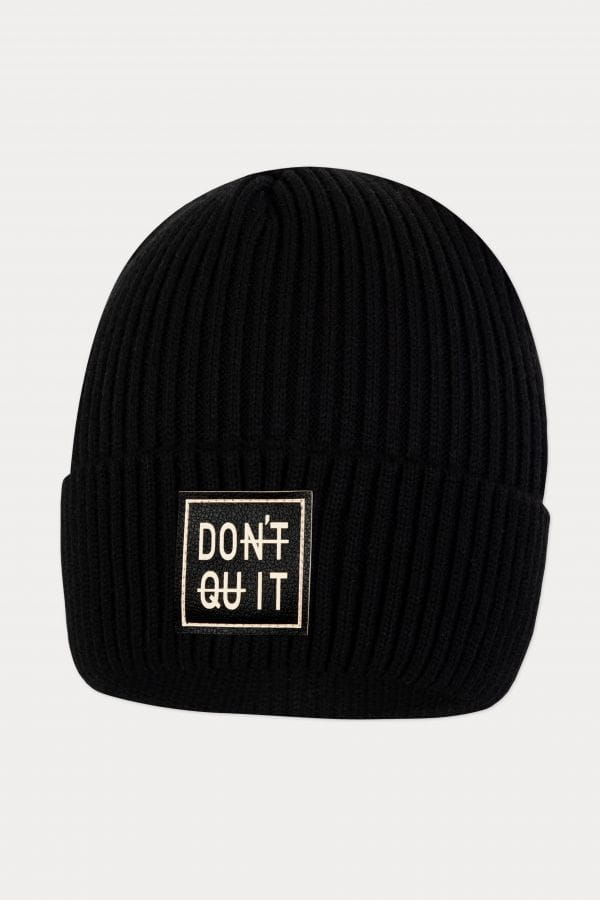 Świetna czapka Broel dla chłopca w czarnym kolorze, odwijana, z niewielką naszywką z eko skóry z przodu.