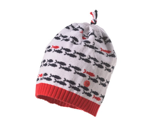 Fajna czapka dzianinowa Jamiks dla chłopca w czerwonym kolorze z nadrukiem rybek.