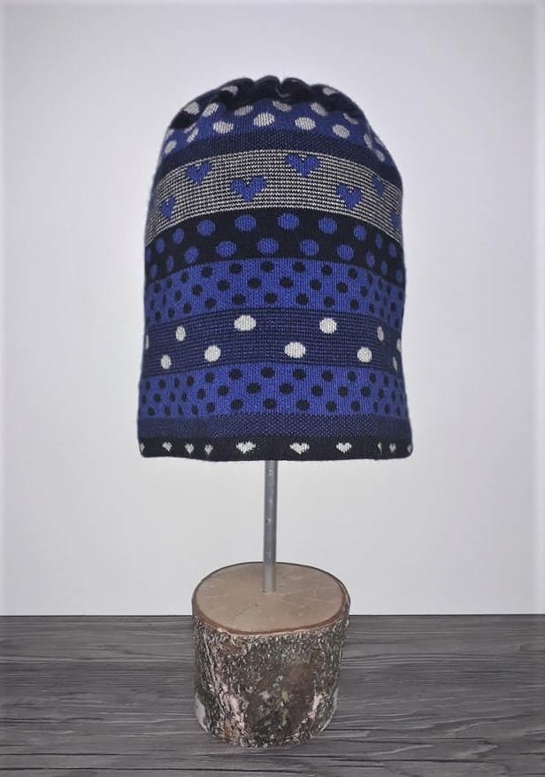 Świetna czapka Jamiks dla dziewczynki we wzory, w szafirowo-czarnym kolorze z podwójnej dzianiny.