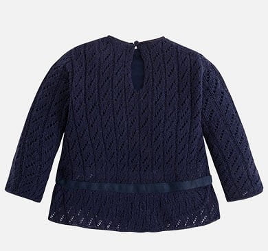 Granatowy sweter ażurowy Mayoral z koszulką dla dziewczynki