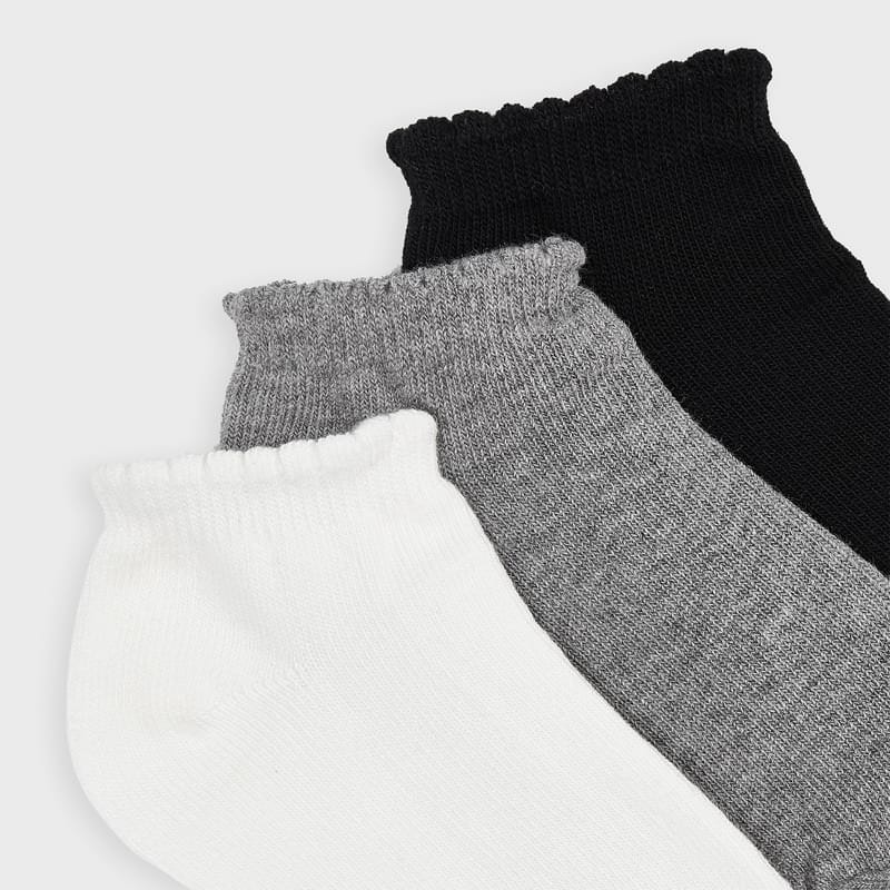 Komplet trzech par gładkich skarpetek dla dziewczynki-białe, szare i czarne.