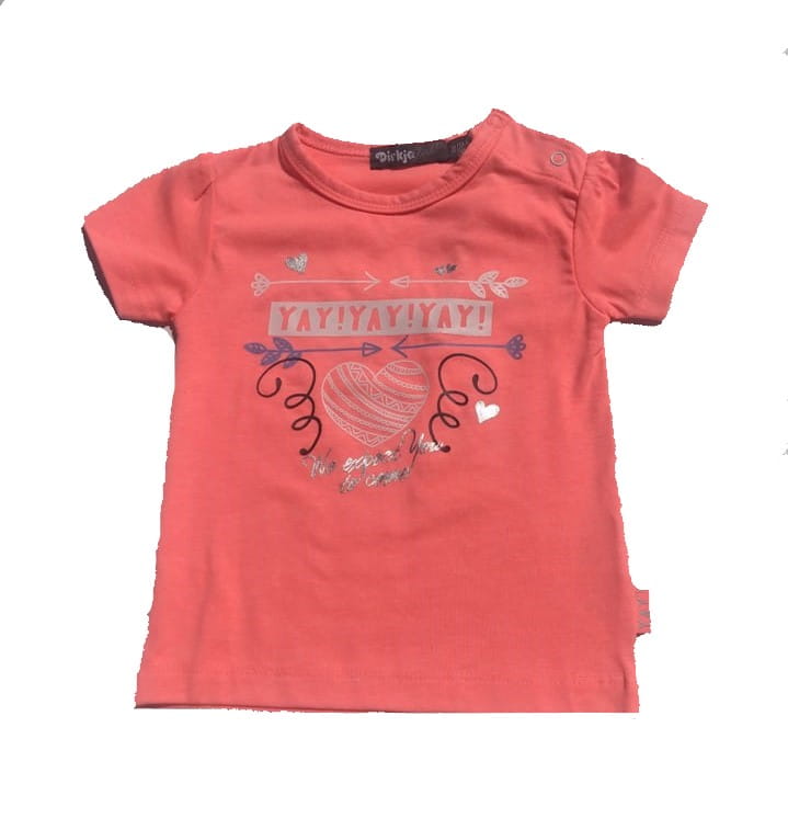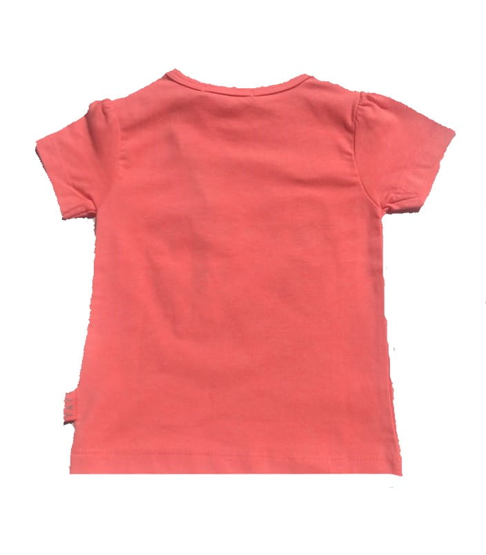 Śliczna koszulka Dirkje dla dziewczynki w różowym, neonowym kolorze z nadrukiem. Koszulka zapinana z boku przy szyi na dwa napy.