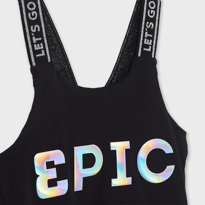 Fajna koszulka Mayoral dla dziewczynki w czarnym kolorze, na ramiączkach z napisami.