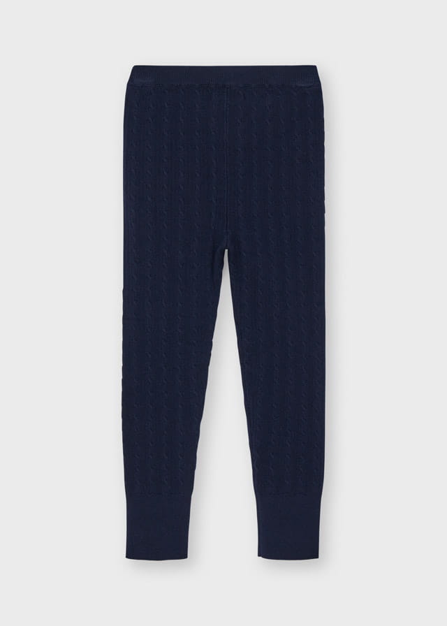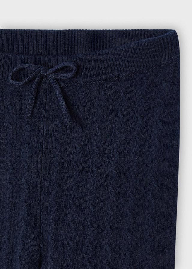 Wygodne legginsy Mayoral dla dziewczynki w granatowym kolorze, trykotowe z o ciekawym splocie. Legginsy na gumce w pasie.