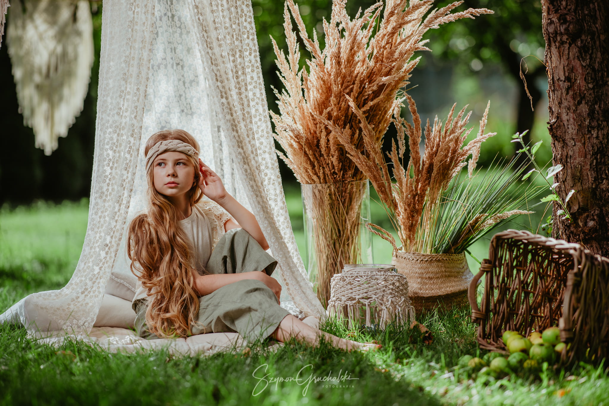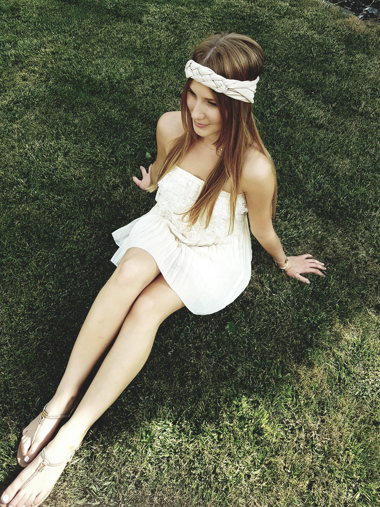 Świetna opaska Jamiks dla dziewczynki w beżowym kolorze z ozdobną plecionką.