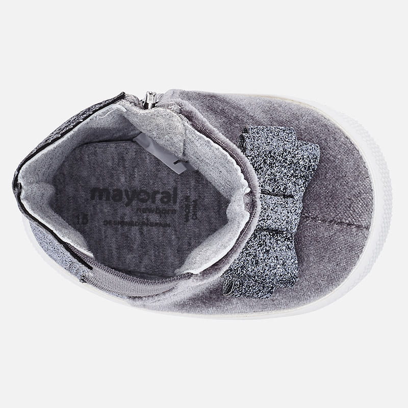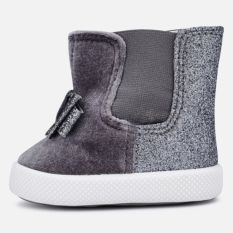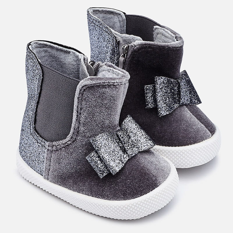 Popielate botki Mayoral z kokardą dla dziewczynki