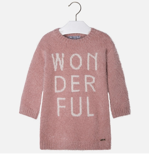 Gruby sweter dla dziewczynki przykrywający uda,delikatny i przyjemny w dotyku. Z przodu drukowany napis:WONDERFUL, a w lewym dolnym boku złota blaszka z napisem Mayoral.