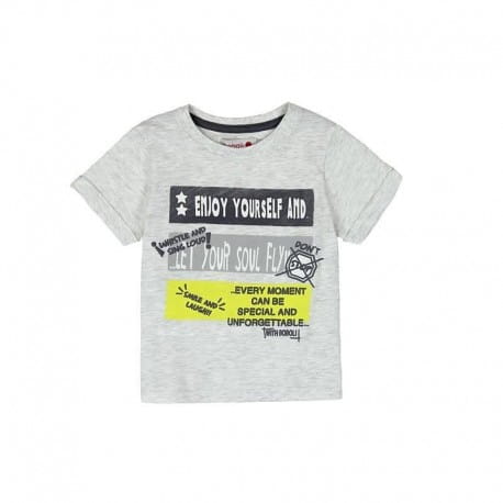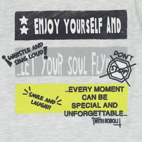 Świetna koszulka Boboli z krótkim rękawem, w szarym kolorze, dla chłopca z napisami.