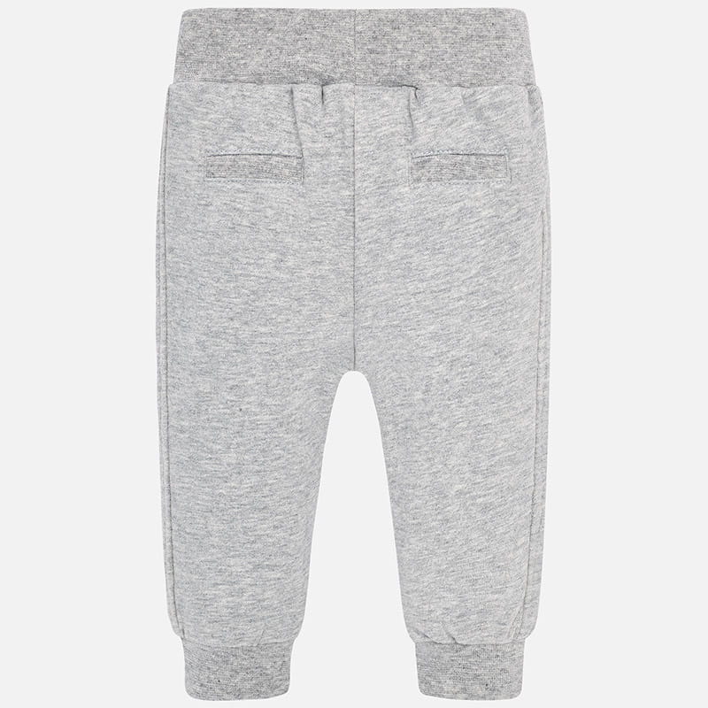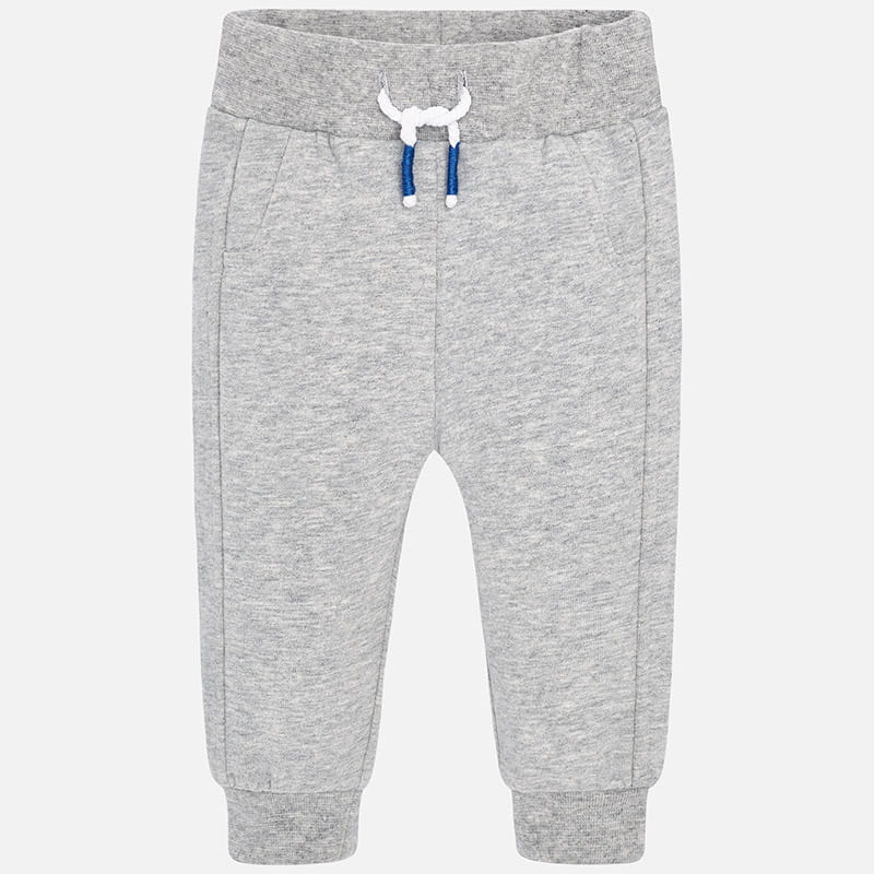 Spodnie dresowe Mayoral dla chłopca, w szarym kolorze, z bocznymi i tylnymi kieszonkami, ze ściągaczami oraz ozdobnym sznureczkiem w pasie.